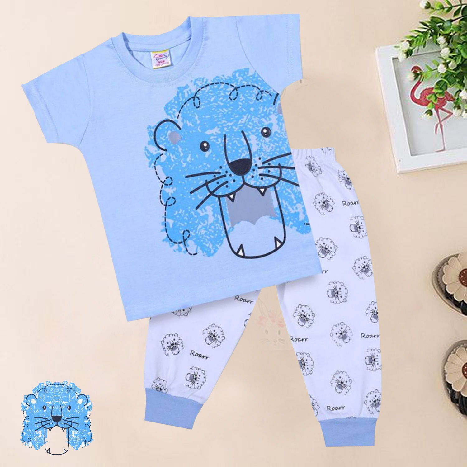 تأتي بتصميم جذاب والوان زاهية تتكون من تيشرت نص كم مع بنطلون