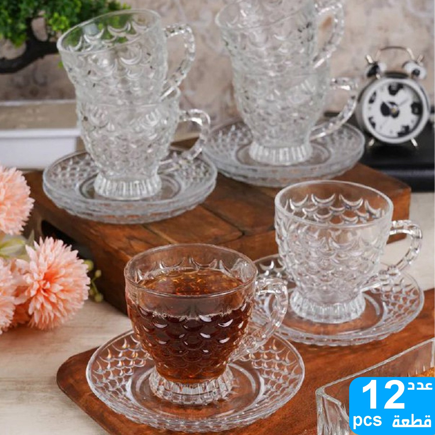 يحتوي الطقم على : 6 أكواب شاي ، 6 صحون أكواب