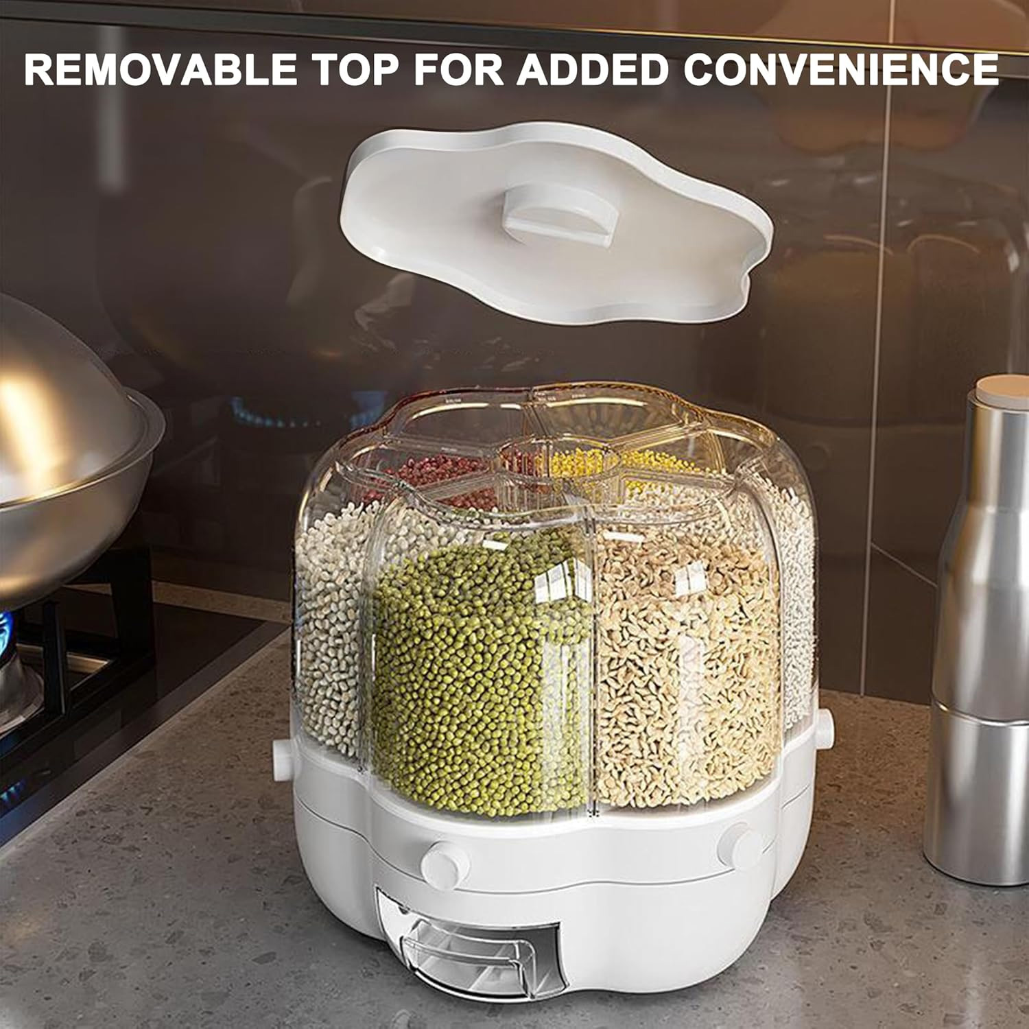 تجمع اكبر كمية من انواع البهارات والحبوب والمنكهات بشكل منظم جميل اثناء الطبخ وبضغطة زر تنزل الكمية المطلوبة وبكل سهولة