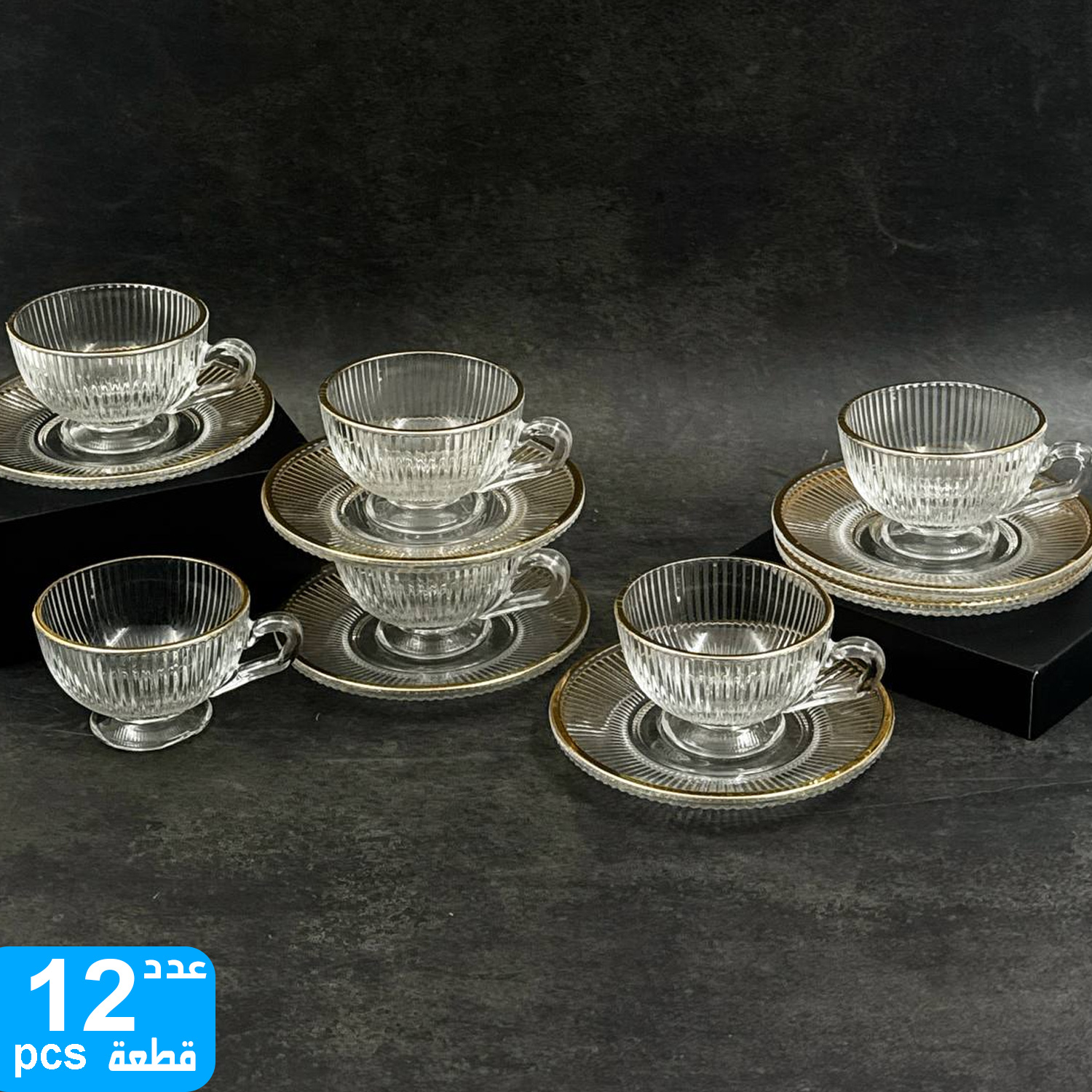 طقم فناجين قهوة تركية زجاج إطار ذهبي مكون من 12 قطعة