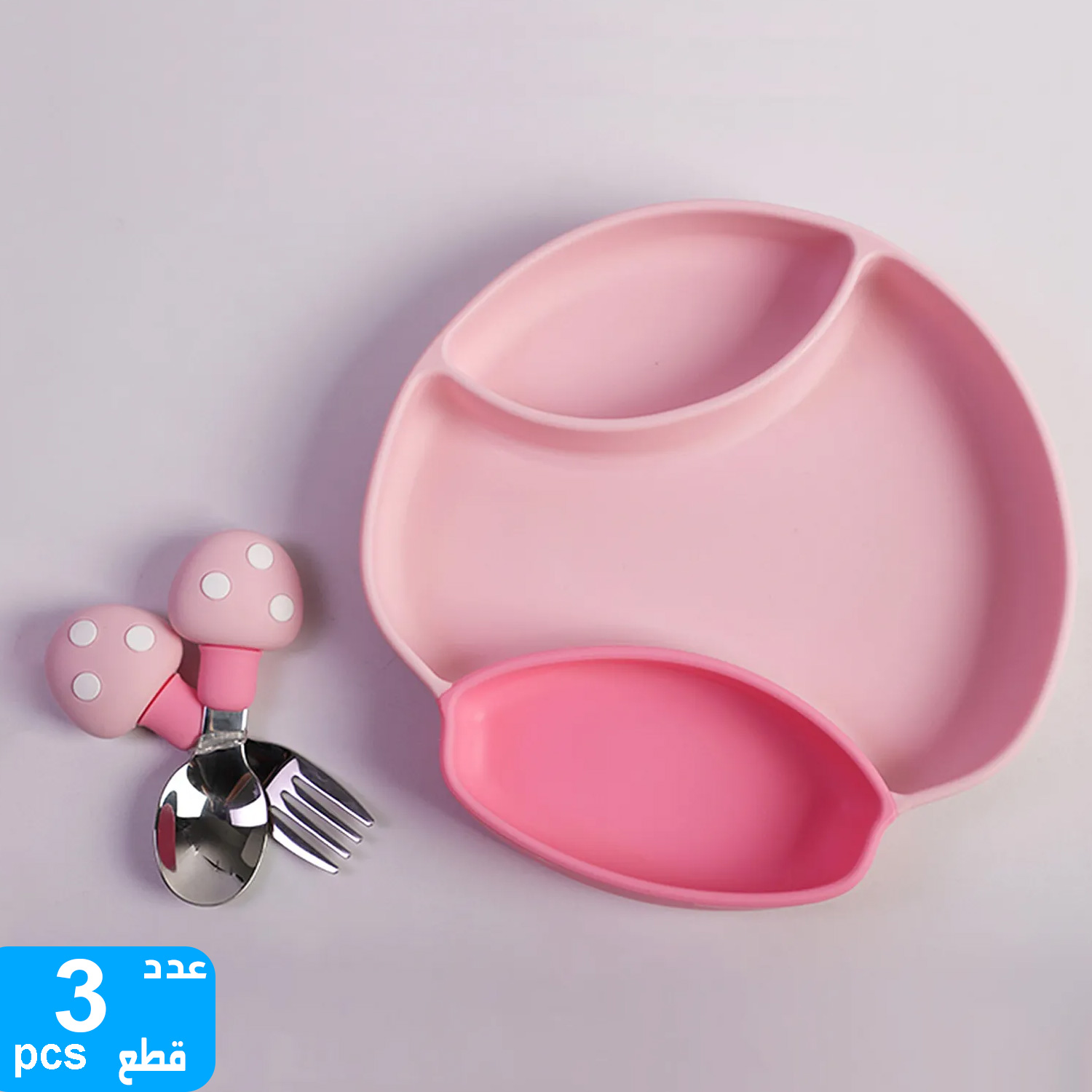 صحن طعام اطفال مقسم مع ملعقة وشوكة مكون من 3 قطع