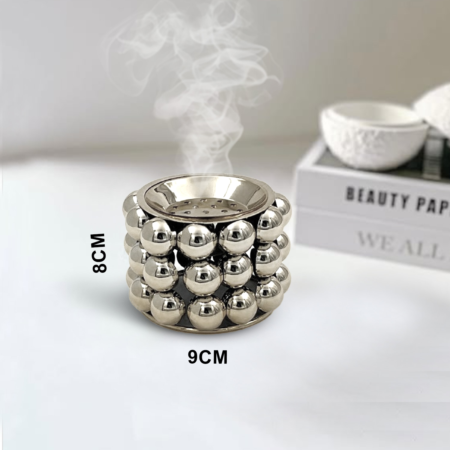 مبخر مصنوع من الستيل الفضي بتصميم هندسي دائري يضفي مزيداً من الجمال واللمعة
