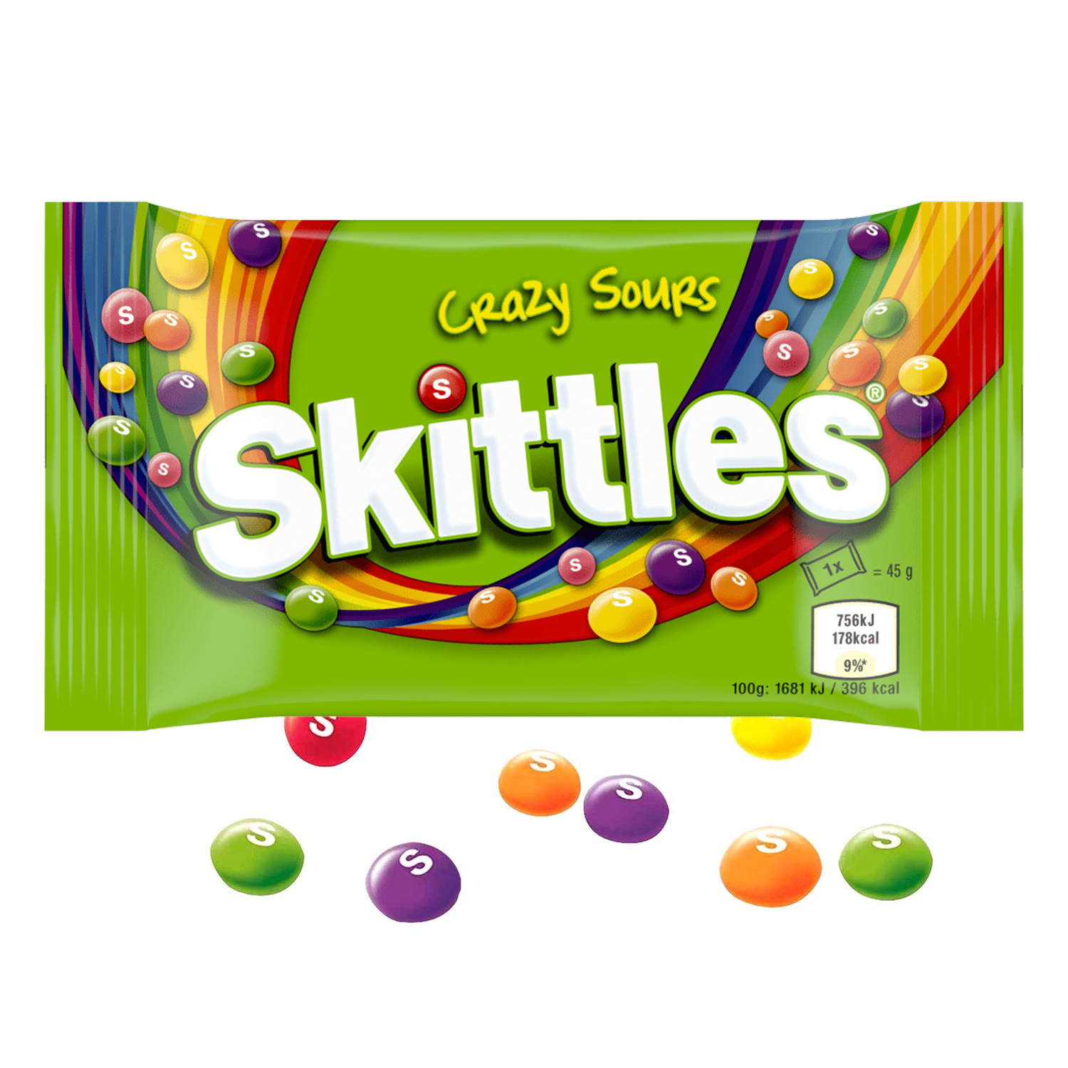 جرب انفجارًا مكثفًا من النكهات الحامضة والحلوة مع كل قضمة من سكيتلز كريزي