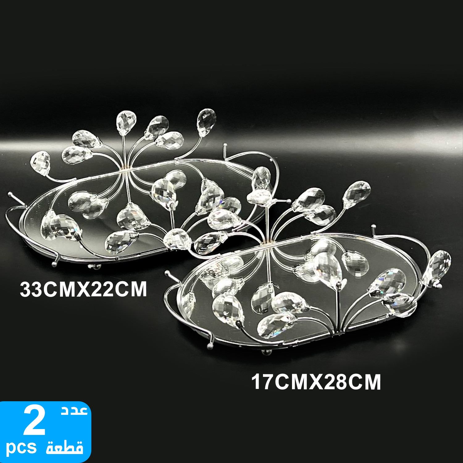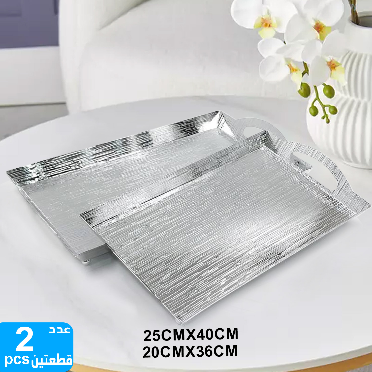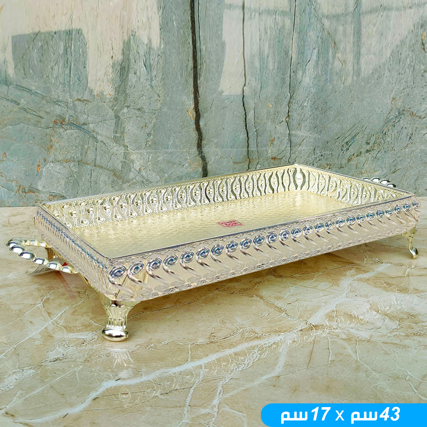 طقم صواني تقديم ستيل فضية يد ذهبي