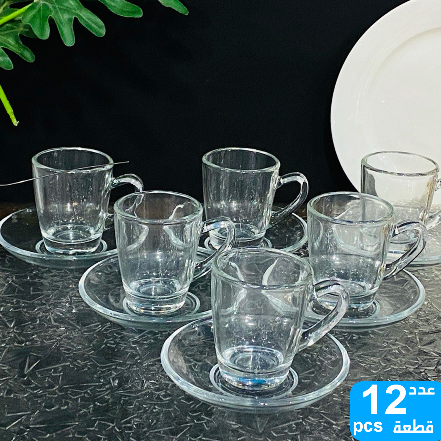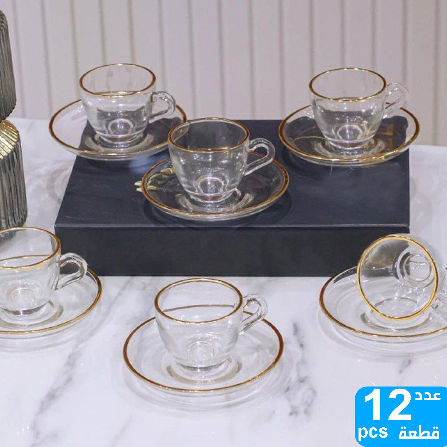 طقم استكانات شاي مع فناجين قهوة عربية ومطارتين