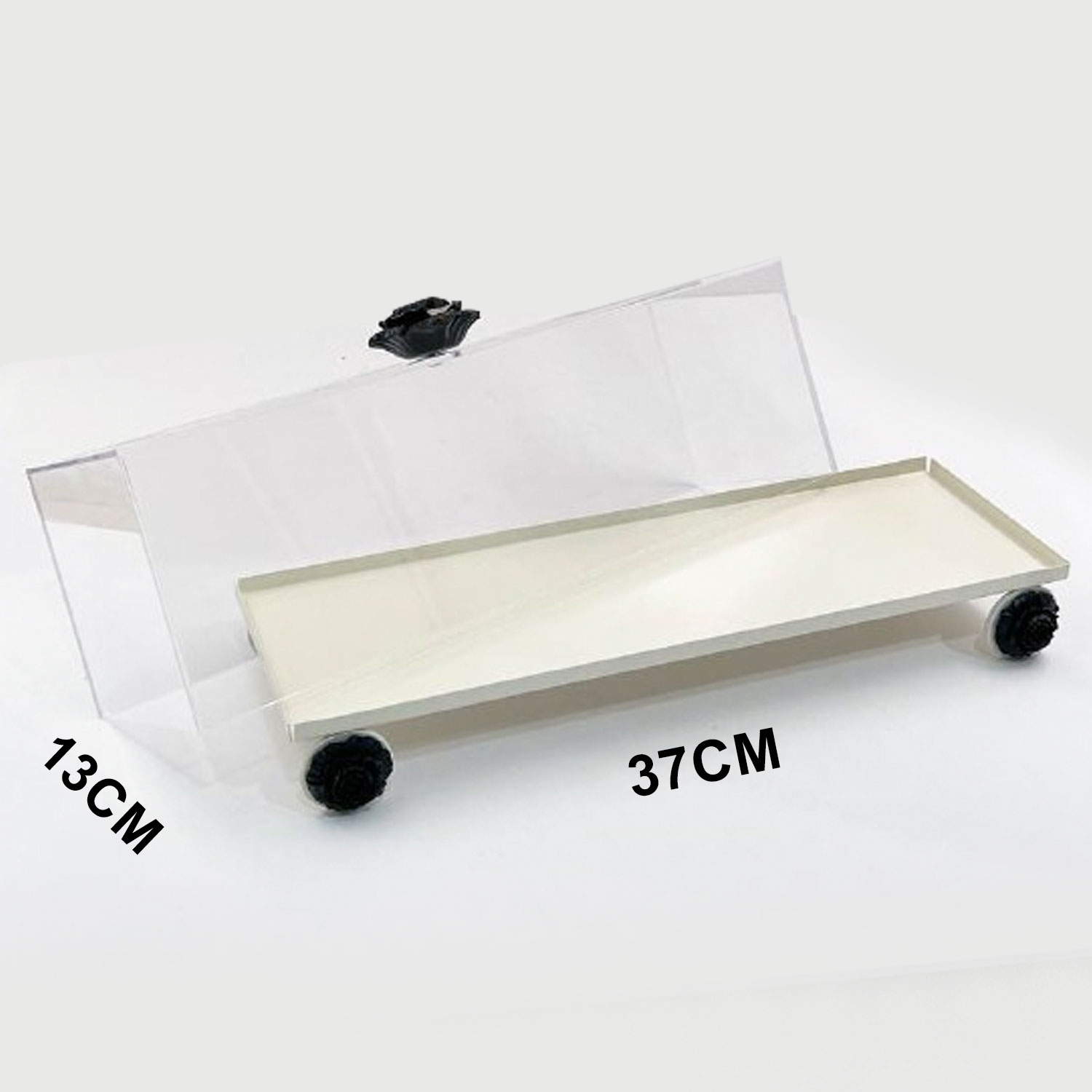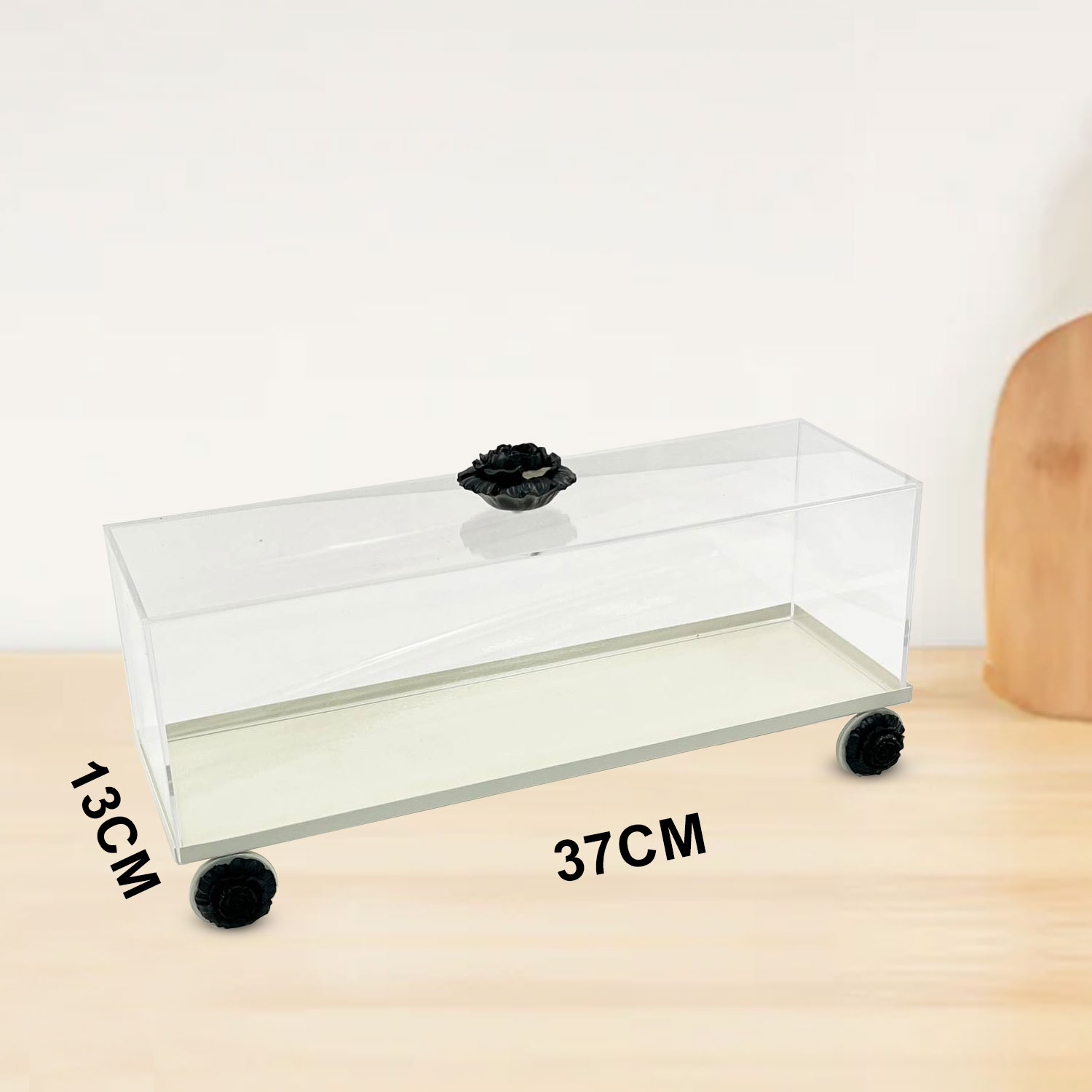 A cover made of transparent acrylic with a rose-shaped handle