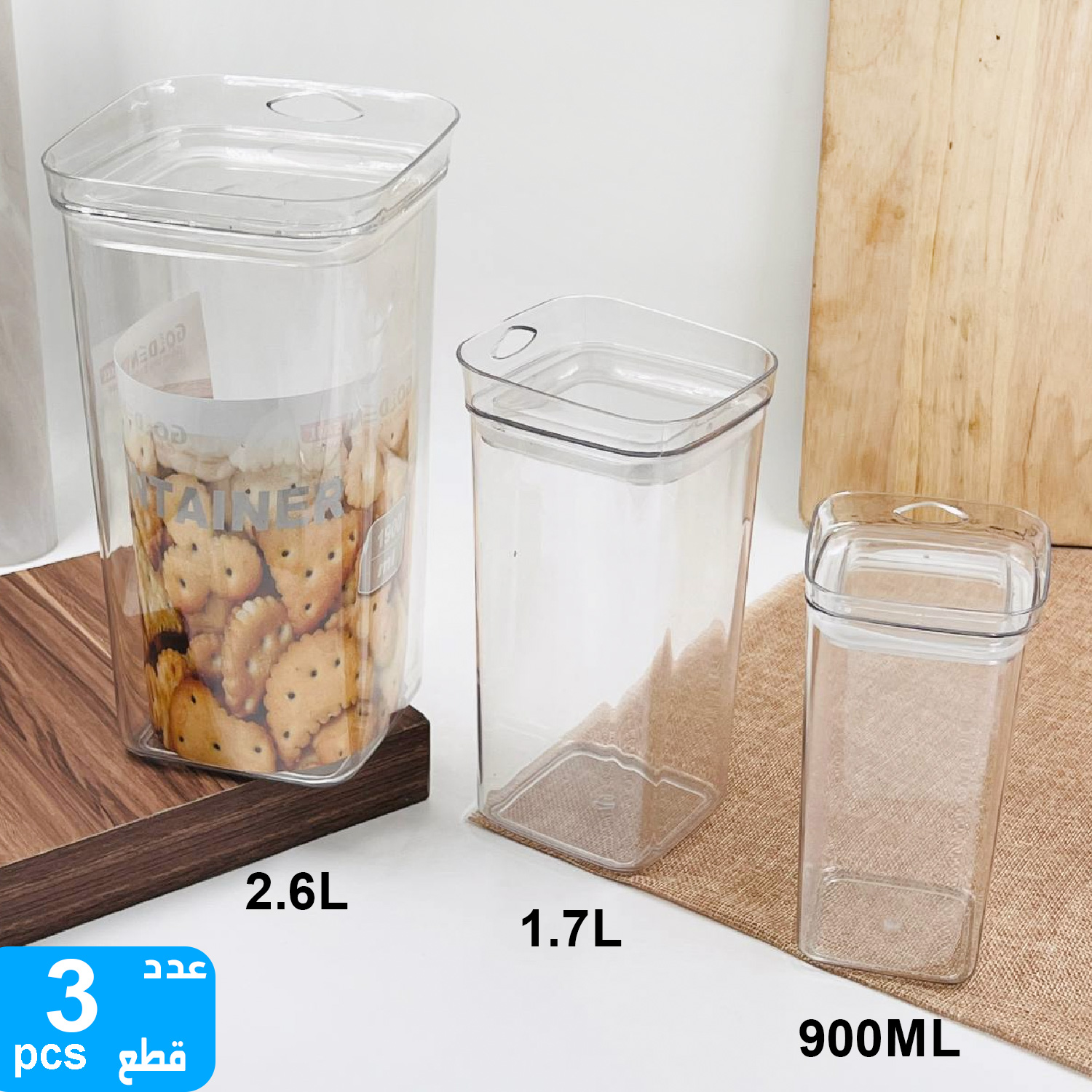 Capacity: 2.6 liters (larger jar) and 1.7 liters (medium jar) and 900 ml (small jar)