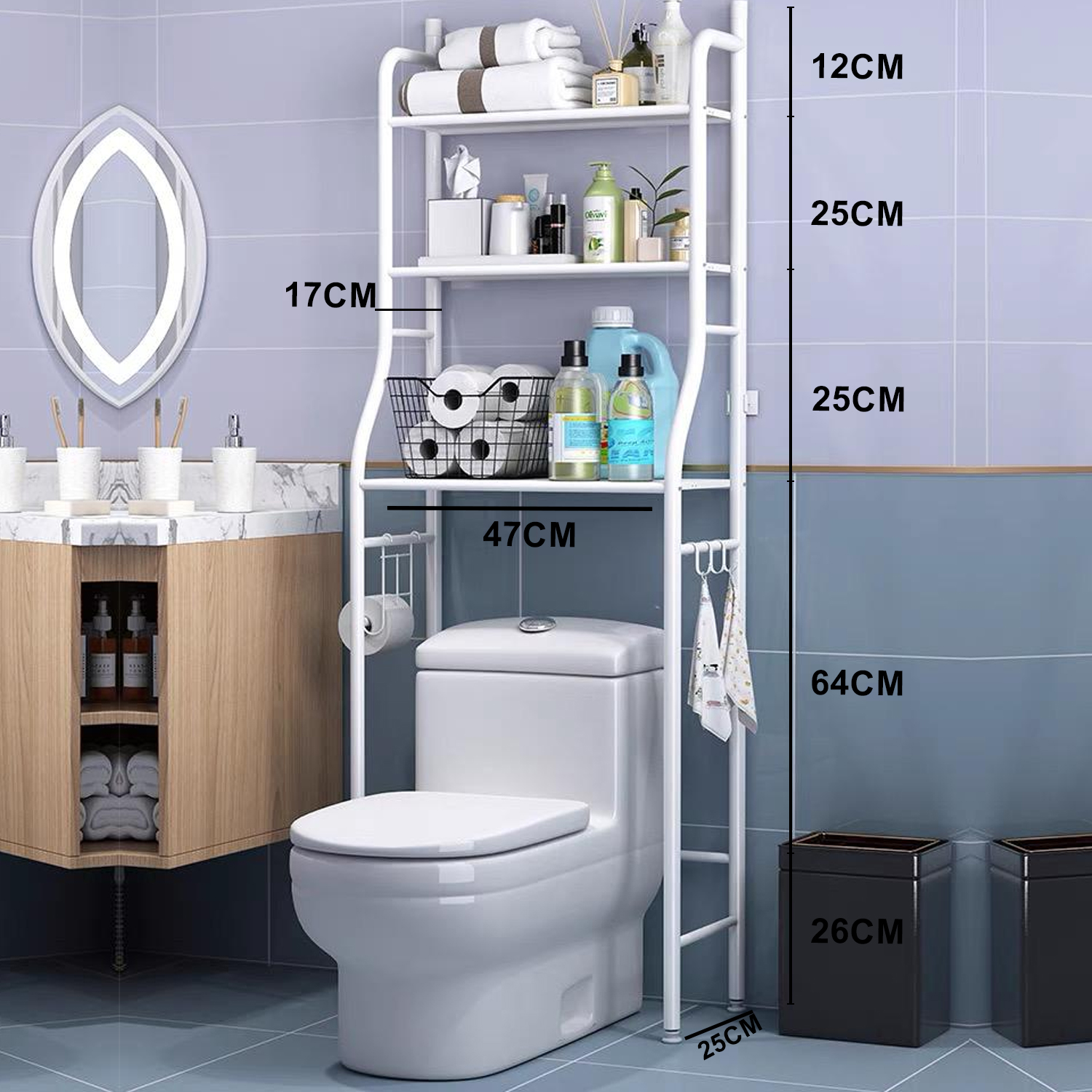 Design: Space-saving structure designed to fit over most toilets, featuring three open shelves for convenient storage